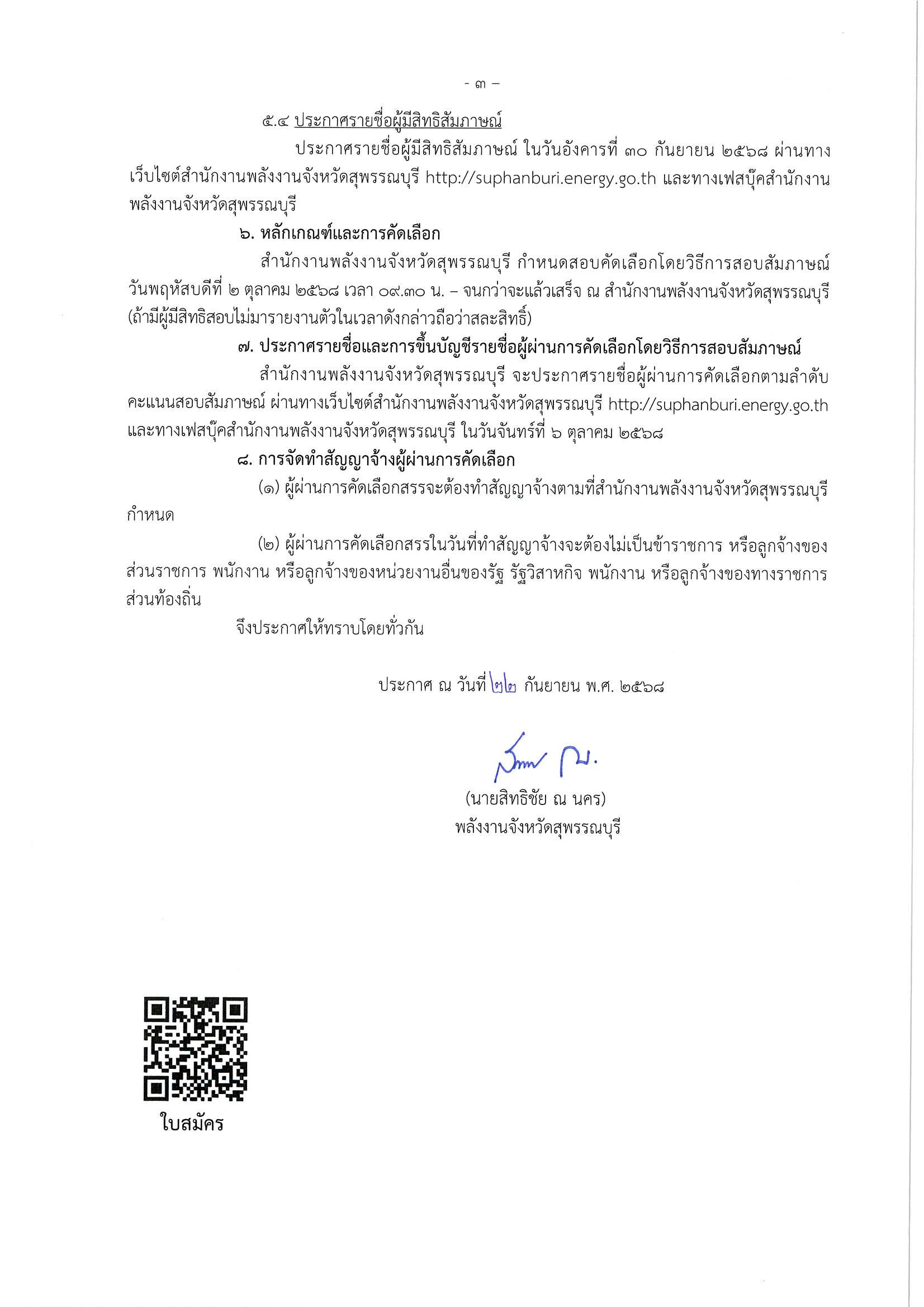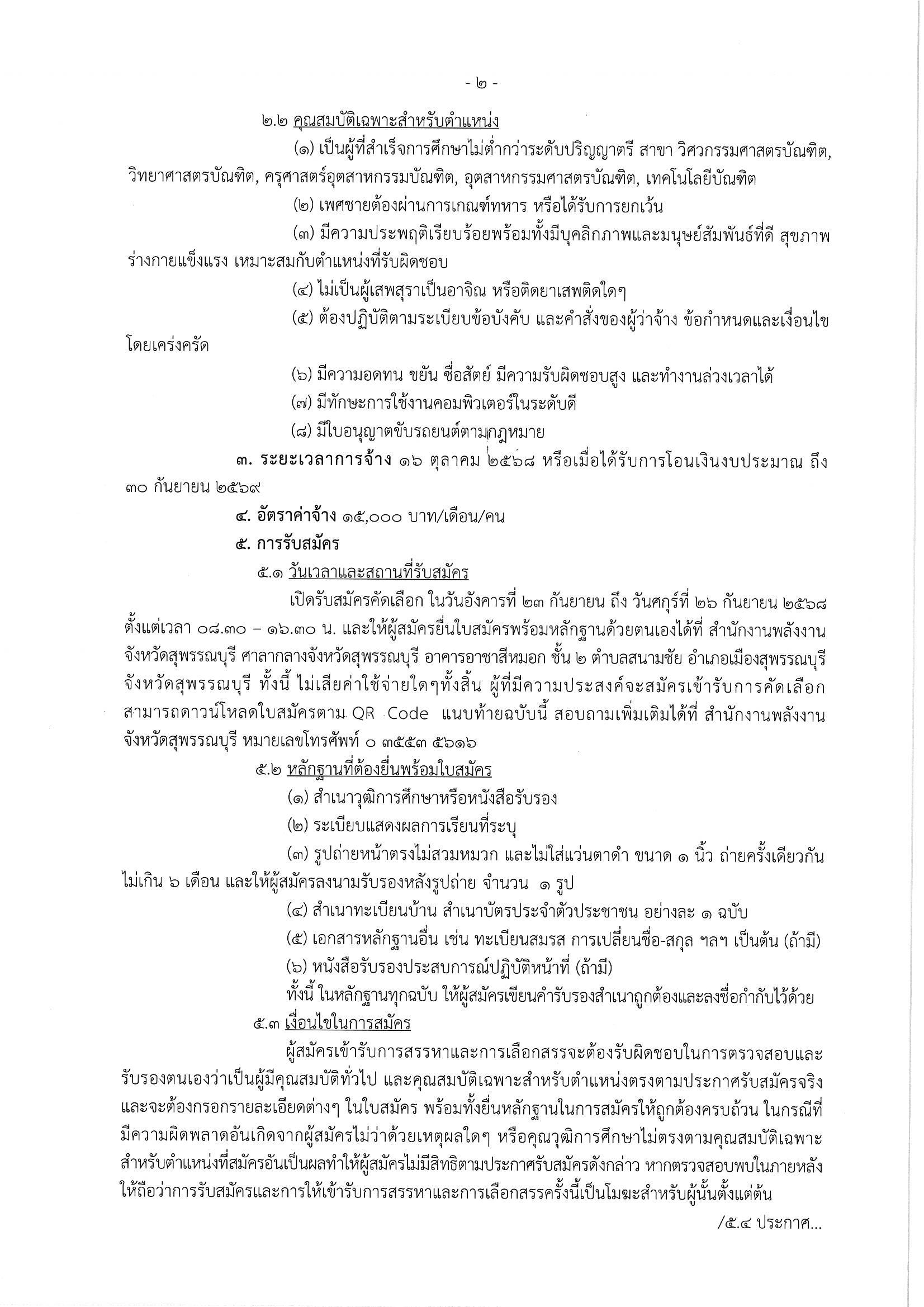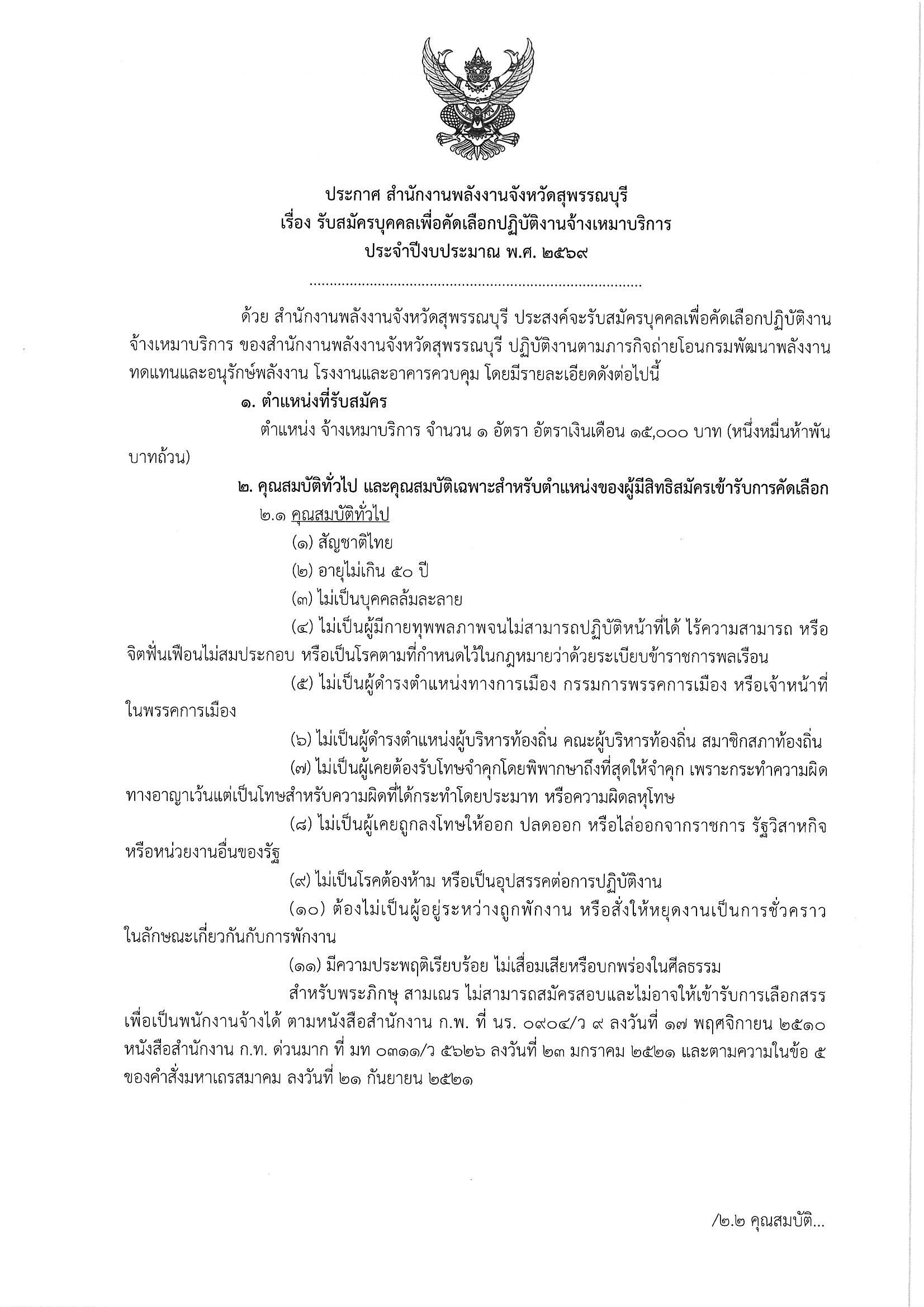 ประกาศ สำนักงานพลังงานจังหวัดสุพรรณบุรี รับสมัครจ้างเหมาบริการ จำนวน 1 อัตรา