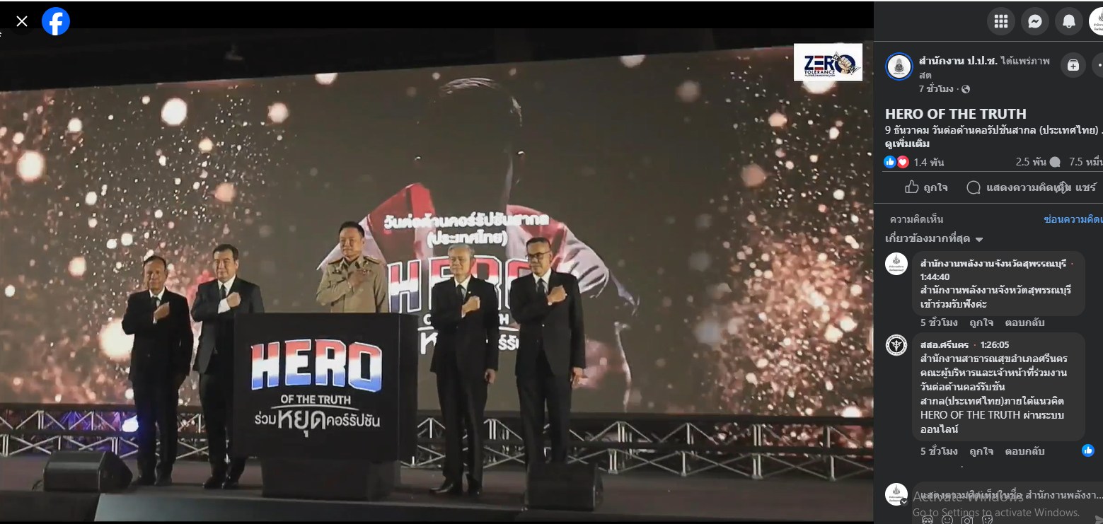 วันอังคาร ที่ 9 ธันวาคม 2568 นายสิทธิชัย ณ นคร พลังงานจังหวัดสุพรรณบุรี มอบหมายให้ นายศรินทร์ วันยะ นักวิชาการพลังงานชำนาญการพิเศษ เข้าร่วมรับชมการประกาศเจตนารมณ์ เนื่องในงานวันต่อต้านคอร์รัปชันสากล (ประเทศไทย) ภายใต้แนวคิด “HERO OF THE TRUTH ร่วมหยุดคอร์รัปชัน” และร่วมประชุมคณะกรรมการผลักดันการดำเนินงานตามแผนแม่บทภายใต้ยุทธศาสตร์ชาติ ประเด็นการต่อต้านการทุจริตและประพฤติมิชอบ จังหวัดสุพรรณบุรี เพื่อพิจารณา (ร่าง) แผนยกระดับการประเมินคุณธรรมและความโปร่งใสในการดำเนินงานของหน่วยงานภาครัฐ จังหวัดสุพรรณบุรี ประจำปีงบประมาณ 2569 ณ ห้องประชุมขุนแผน ชั้น 4 ศาลากลางจังหวัดสุพรรณบุรี อำเภอเมือง จังหวัดสุพรรณบุรี