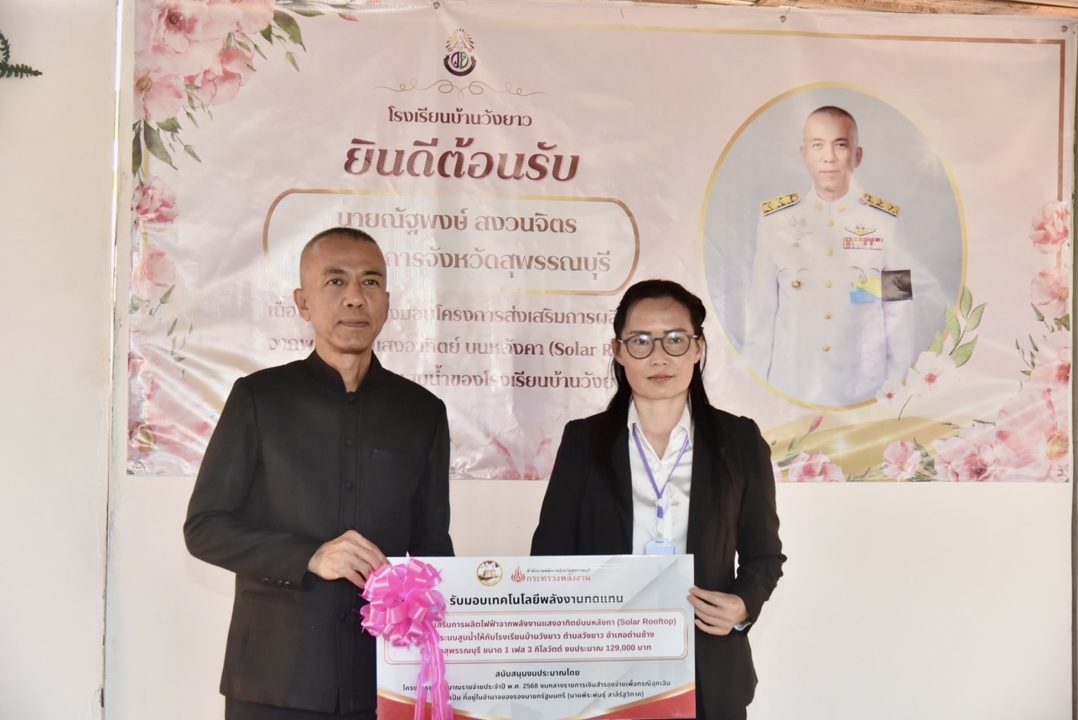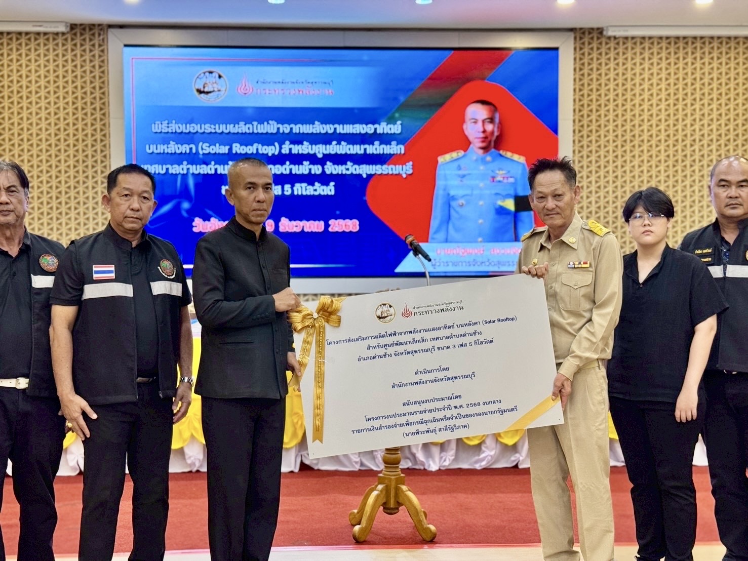 วันอังคารที่ 9 ธันวาคม 2568 สำนักงานพลังงานจังหวัดสุพรรณบุรี จัดกิจกรรมส่งมอบโครงการส่งเสริมการผลิตไฟฟ้าจากพลังงานแสงอาทิตย์บนหลังคา (Solar Rooftop) สำหรับศูนย์พัฒนาเด็กเล็กเทศบาลตำบลด่านช้าง ขนาด 3 เฟส 5 กิโลวัตต์ งบประมาณ 208,000 บาท , โครงการส่งเสริมการผลิตไฟฟ้าจากพลังงานแสงอาทิตย์บนหลังคา (Solar Rooftop) สำหรับระบบสูบน้ำให้กับโรงเรียนบ้านวังยาว ตำบลวังยาว อำเภอด่านช้าง จังหวัดสุพรรณบุรี งบประมาณ 129,000 บาท และโครงการส่งเสริมการใช้ระบบสูบน้ำพลังงานแสงอาทิตย์ แบบลากจูง ขนาดไม่น้อยกว่า 3,060 วัตต์ ให้กับองค์การบริหารส่วนตำบลวังยาวอำเภอด่านช้าง จังหวัดสุพรรณบุรี จำนวน 3 ระบบ งบประมาณ 750,000 บาท สำนักงานพลังงานจังหวัดสุพรรณบุรี ได้รับการจัดสรรงบประมาณจากโครงการงบประมาณรายจ่ายประจำปีงบประมาณพ.ศ. 2568 งบกลาง รายการเงินสำรองจ่ายเพื่อกรณีฉุกเฉินหรือจำเป็นที่อยู่ในอำนาจของรองนายกรัฐมนตรี (นายพีระพันธุ์ สาลีรัฐวิภาค) ในพื้นที่เขตตรวจราชการที่ 3