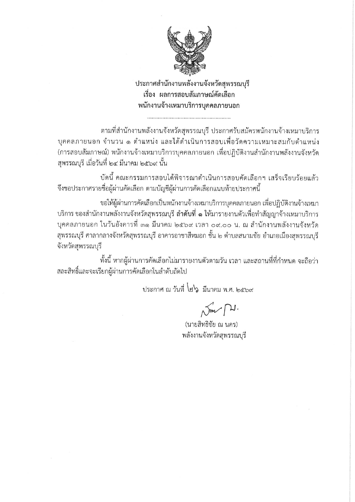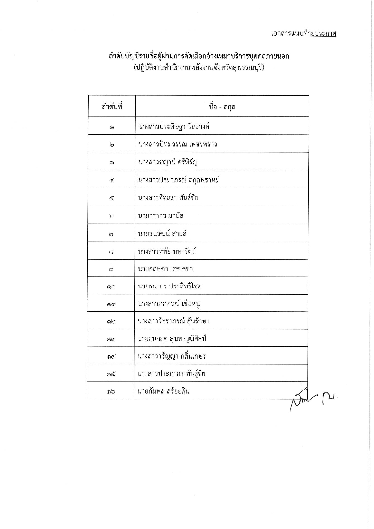 ประกาศรายชื่อผลการสอบสัมภาษณ์ ตำแหน่งจ้างเหมาบริการบุคคลภายนอก